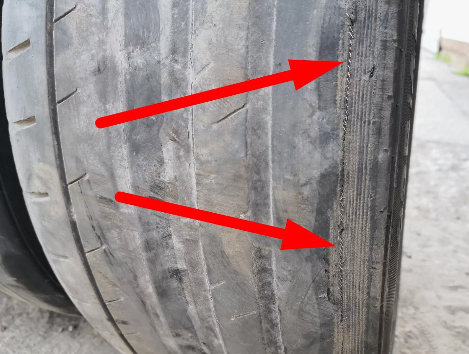 - Торчащие капроновые или стальные нити корда на поверхности или боковинах шин свидетельствуют о незамедлительной необходимости замены шин, ведь их обрыв ведет к разрушению всего каркаса шины